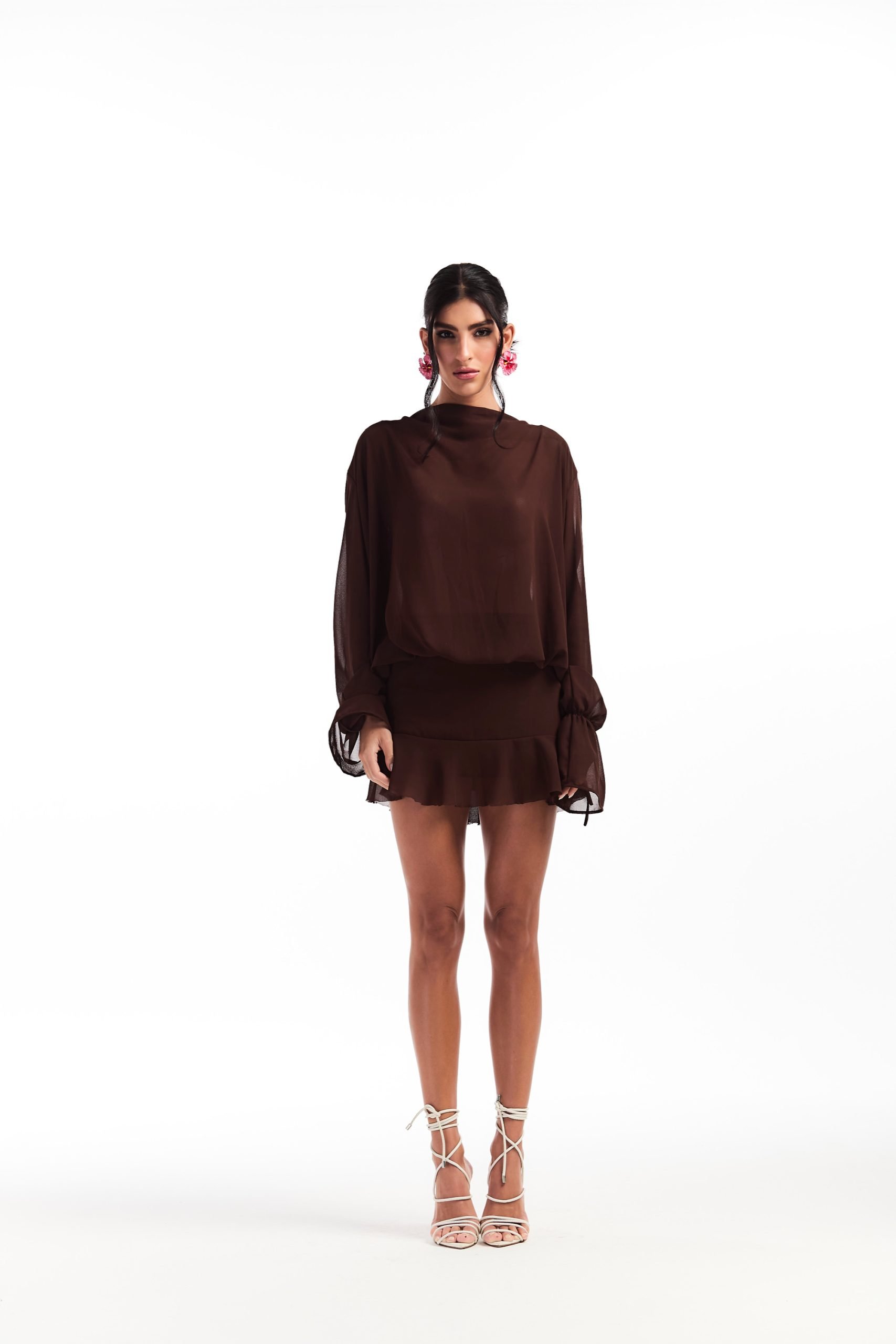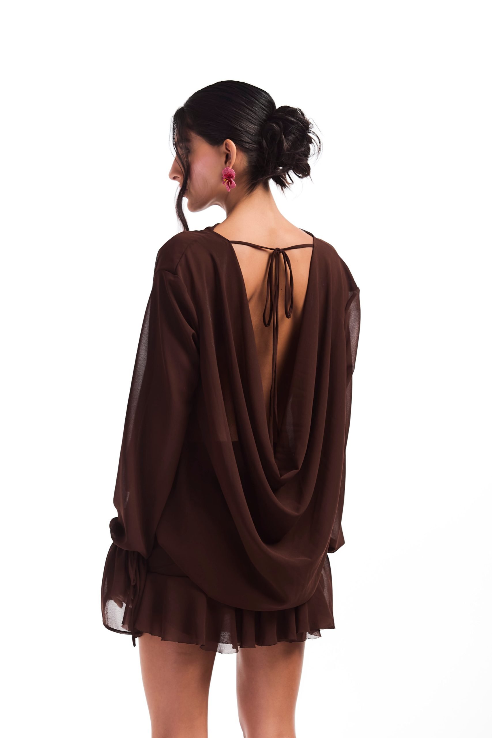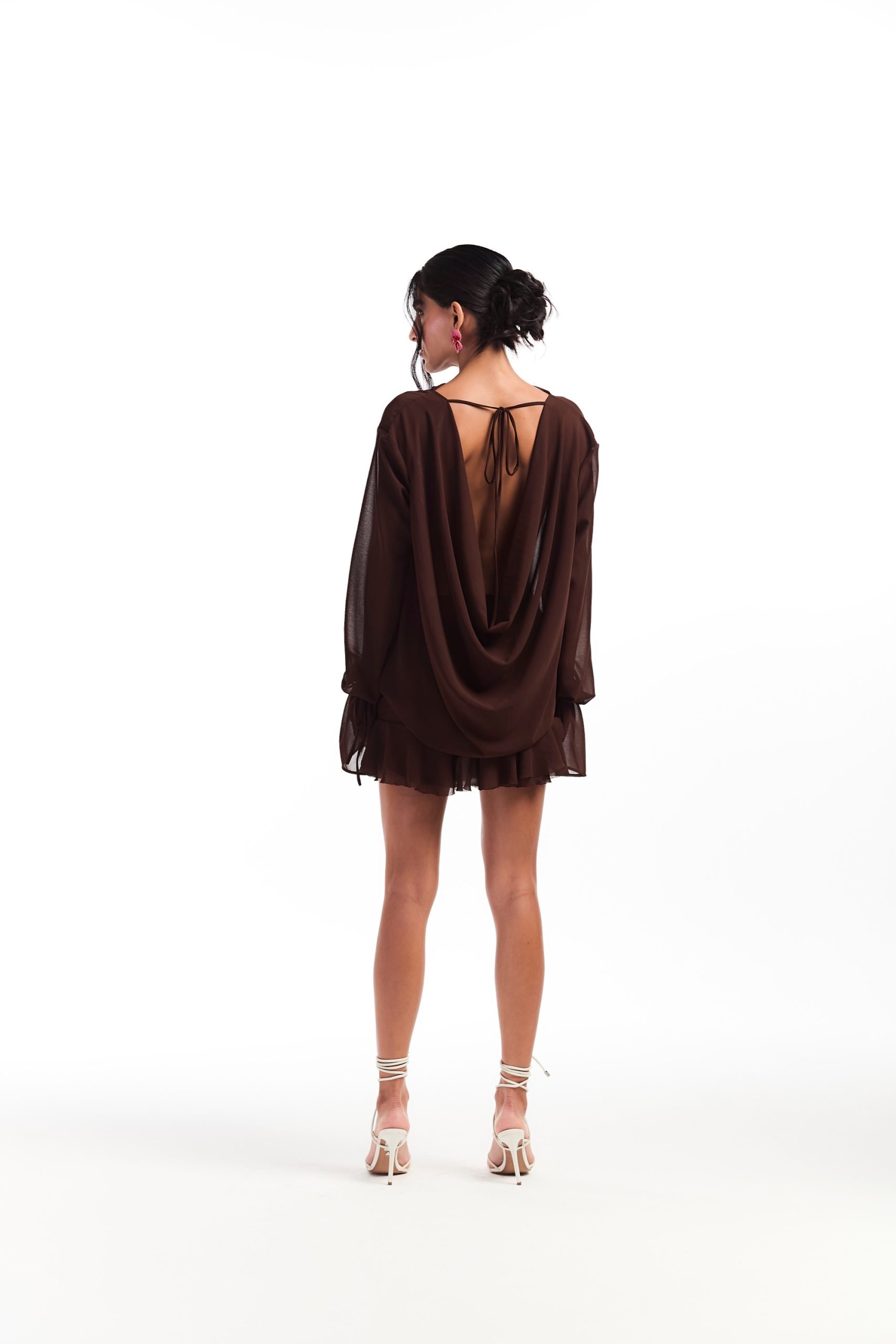 Vestido de chiffon com zíper invisível