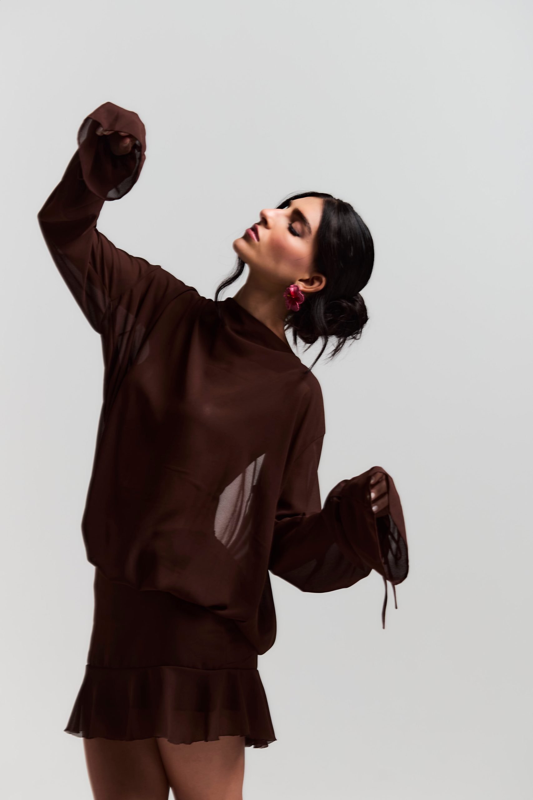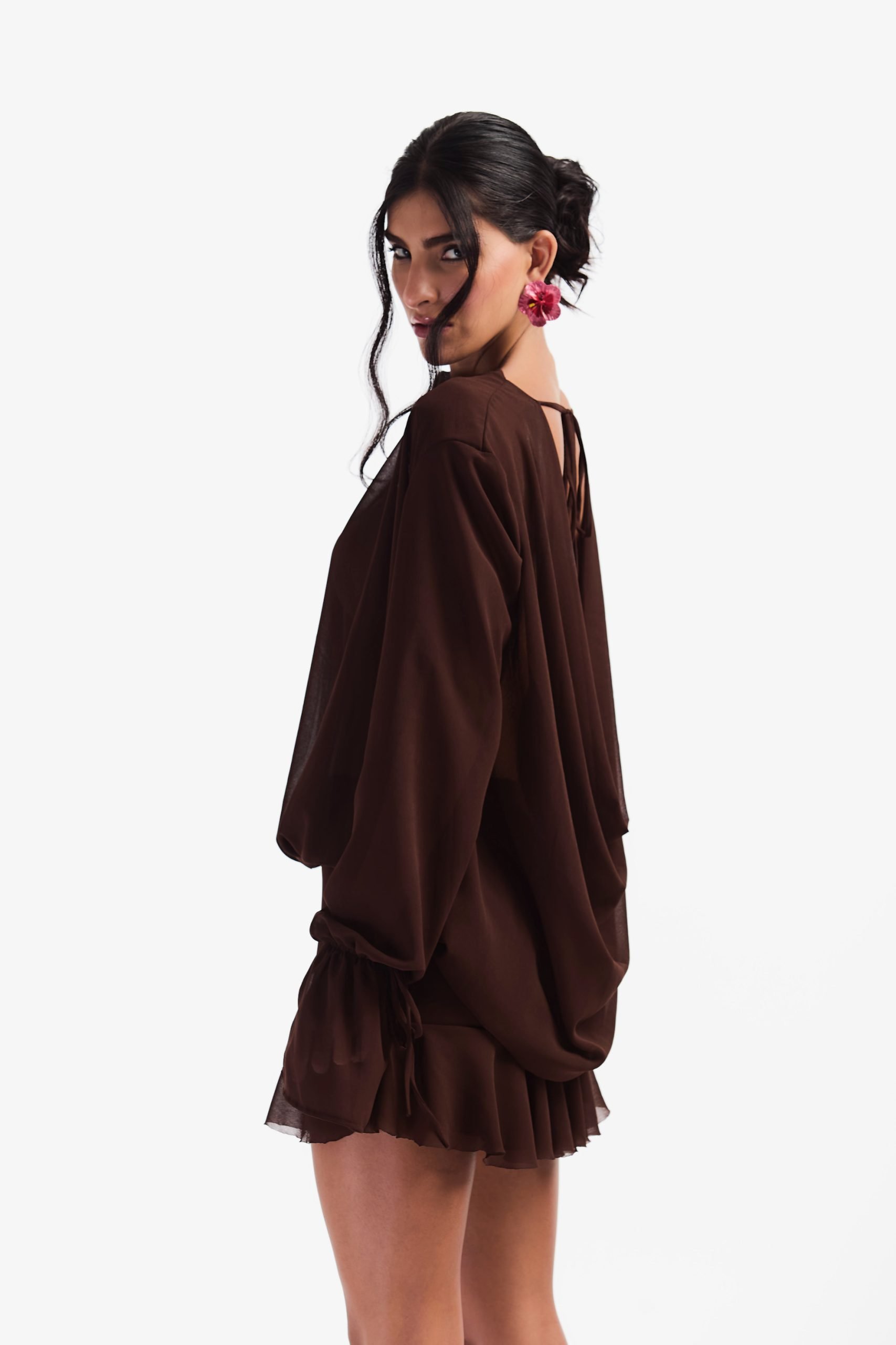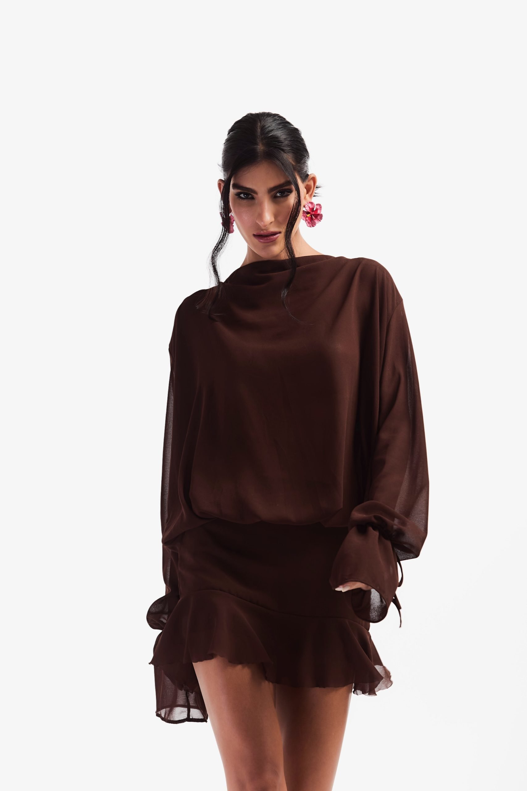 Vestido de chiffon com zíper invisível